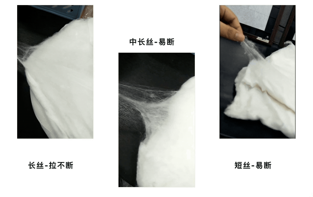 因为中短丝是长丝剩下的边角料,容易移位板结,盖着远没有长丝舒适,使用寿命也短暂。
