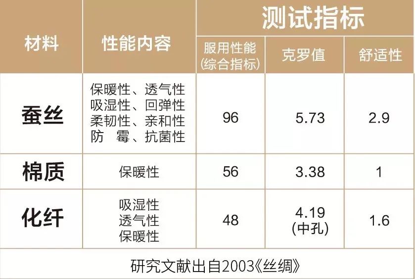 有数据显示,蚕丝的保暖性、透气性、柔韧性等综合使用舒适度在众多纤维填充物中脱颖而出。
