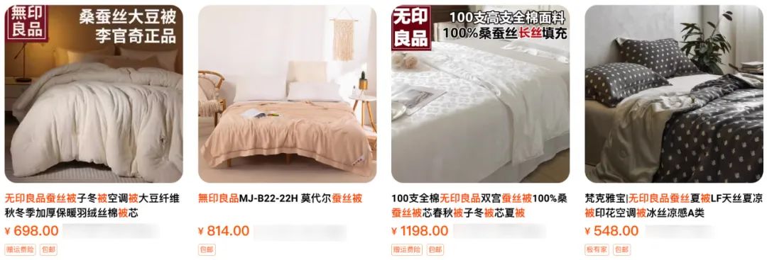 同品质的【無印良品】100%蚕丝被,不说线下,在某宝上随便一搜都是这个价位👇