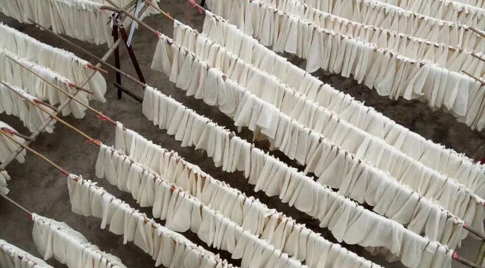 待晒干后即成一只只“纯粹如玉”半圆形的的棉兜了,这个过程至少需要3-4个小时!