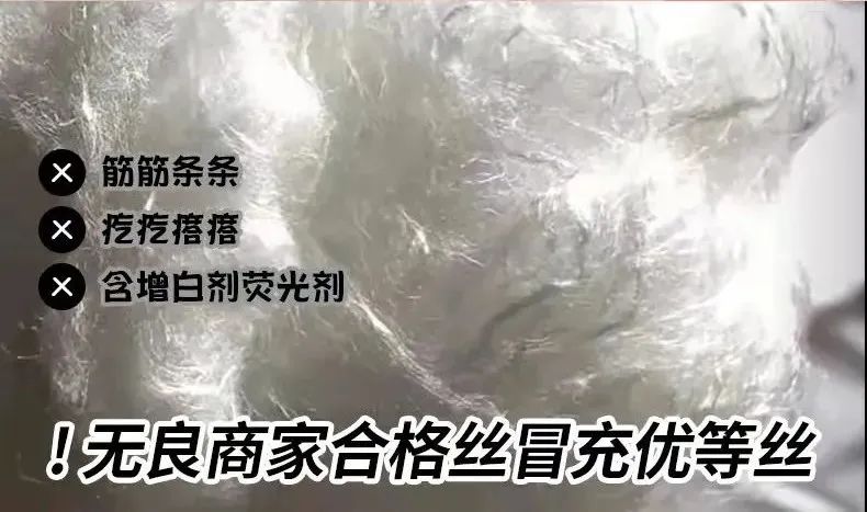 丝路清晰、闪着银光、单根丝微微有弹性、韧性很好,不会轻易扯断。