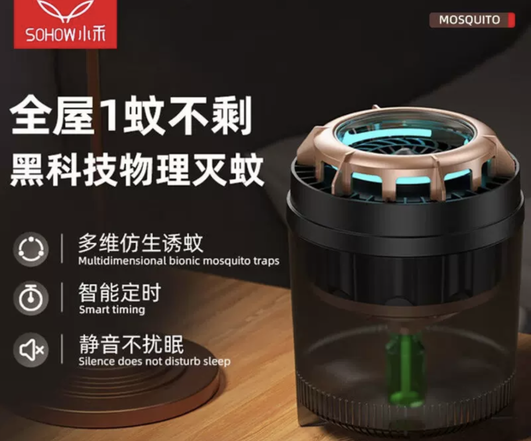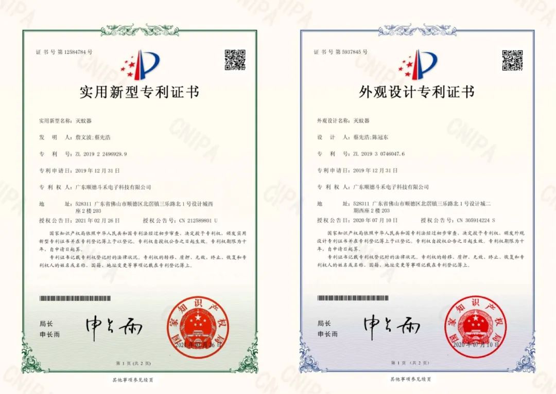 仿人体气息+仿体温诱蚊+双向光源诱蚊+强劲吸力高效捕蚊!直接斩获了实用新型专利和外观专利!