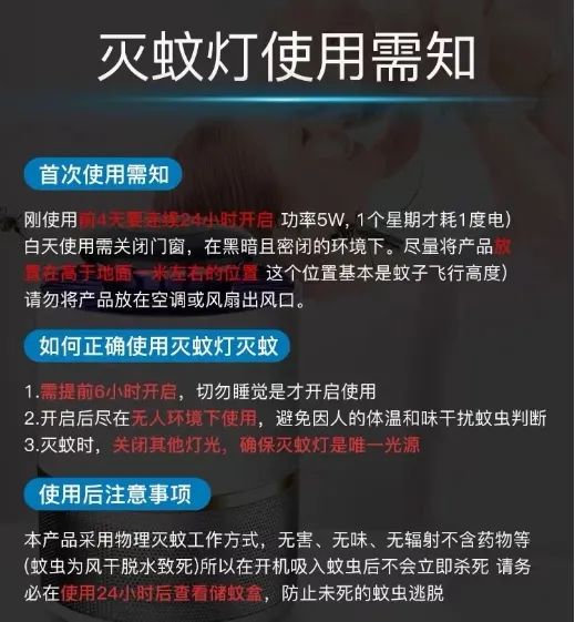 它采用物理灭蚊方式,高效灭蚊,安全环保,一夜灭个百来只蚊子,不在话下!孕妇、婴儿都可以放心使用~方便省事!