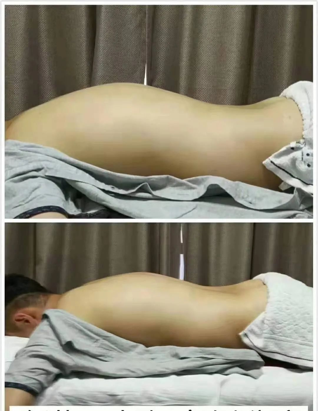 脊柱生理曲度过大。引起驼背圆肩。一次性手法调理案例。