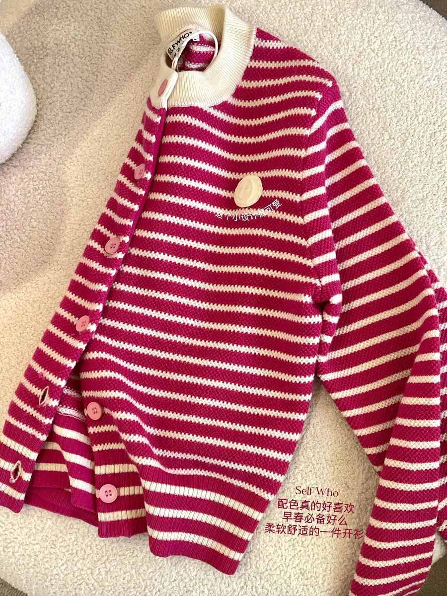 我很喜欢的条纹设计~它用了软糯舒适的羊毛,穿着轻薄透气,细节也很有品质感~
