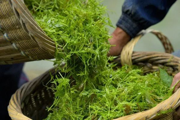 为了保证莓茶的品质,必须全部手工将植株末捎部位,龙须状芽尖采摘下来,费时且费力。
