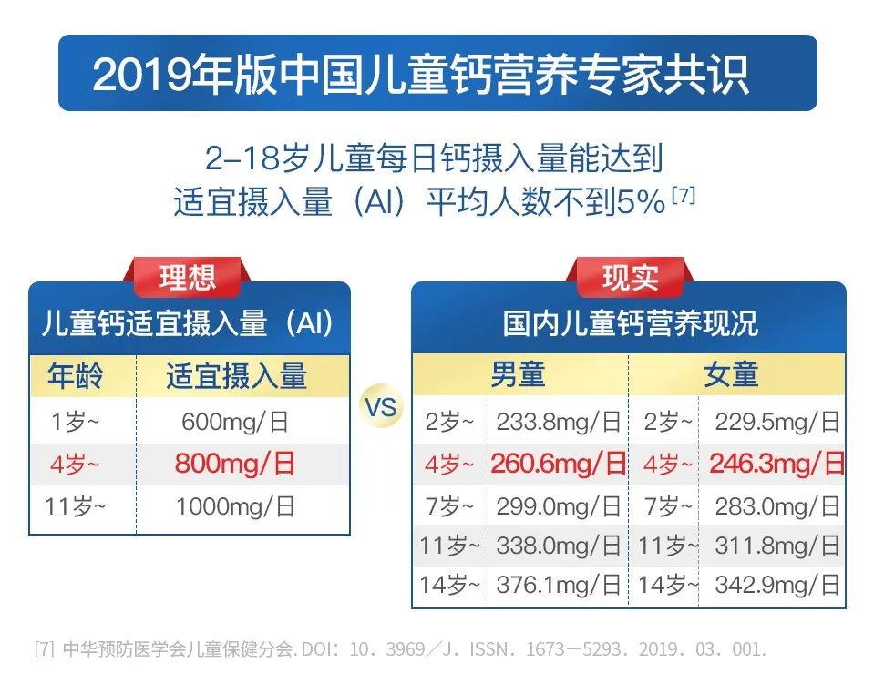 大部分中国孩子每日钙摄入量并达不到建议需求量