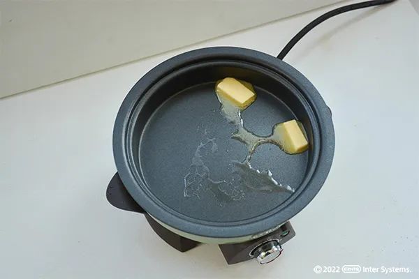 ② 小绿锅中开2档放入黄油。