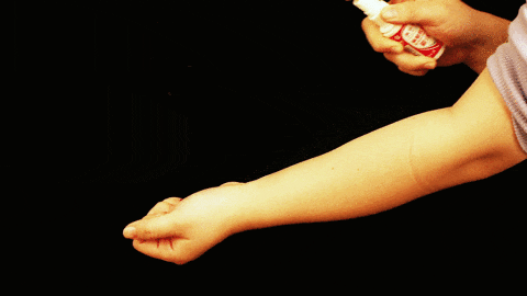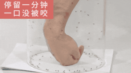 在手臂上喷一喷,整条胳膊裸露着伸进蚊箱里,1分钟后拿出来,竟然一口没被咬!