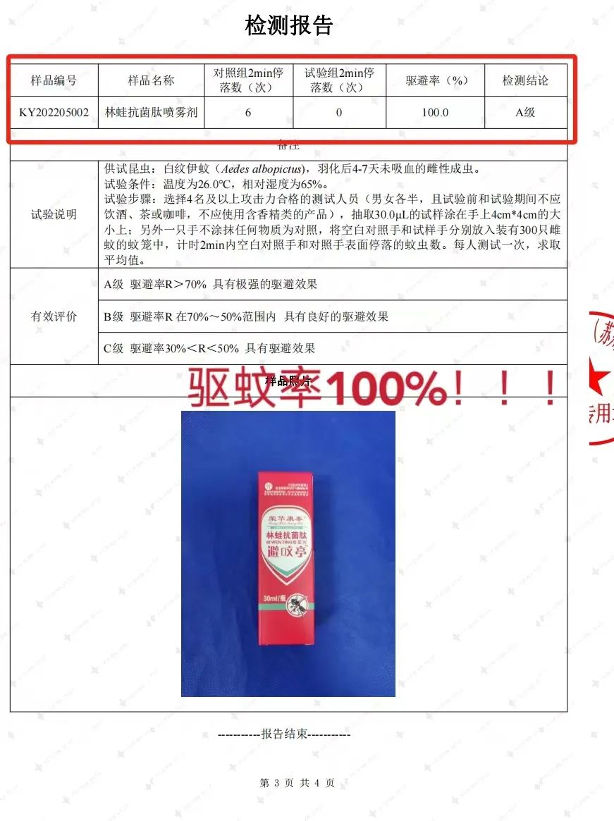 经过专业检测机构检验,检验结果驱蚊率达到100%!!!