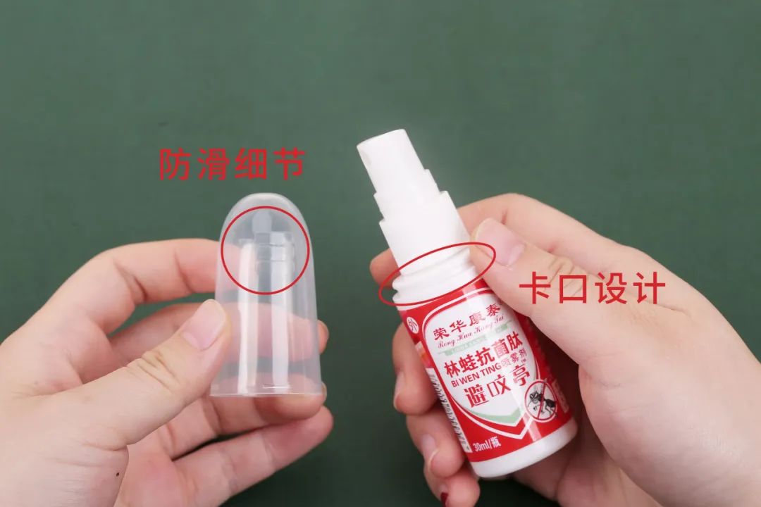 瓶盖防滑,湿手也能直接拔开,卡口设计,盖子不会掉,随身放包里,都不担心会挤压喷出来。