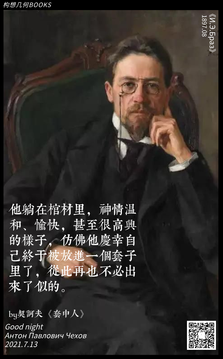 创造出“套中人”形象的契诃夫可能没想到别里科夫还有“社恐属性”。在他获普希金奖的时候曾说:“我所写的一切,过五至十年就会被遗忘。但是,我铺就的道路,将会完整地保留下去,不受损毁,这是我唯一的功劳。”
