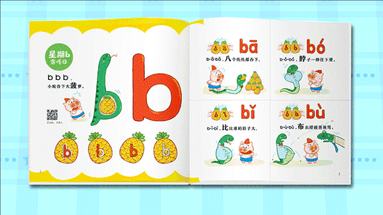 现在就来看看,超萌小猪是如何带孩子解决拼音学习难题的?小猪来支招:讲故事+玩游戏,卸下学习压力,唤醒孩子求知的本能· 字母初亮相,卡通形象“先入为主”,让孩子一眼爱上相比语文教材上和市面上劣质的字母表,这套书里给26字母设计的字体形象,是不是耳目一新,更有记忆点?不止有好玩的故事情节,可爱的卡通人物,更能帮助孩子学习四个声调的读法和写法。· 精心设计的小游戏,超多玩法,帮孩子建立学习兴趣和成就感既巩固了拼音知识,又训练了孩子的逻辑思维能力、观察能力和推理能力。嘻,聪明家长应该已经发现了。四格漫画不仅有四个声调的读法,还是一首超有意思的儿歌。如果孩子在身边的话,父母不妨现在就带着孩子读一读。