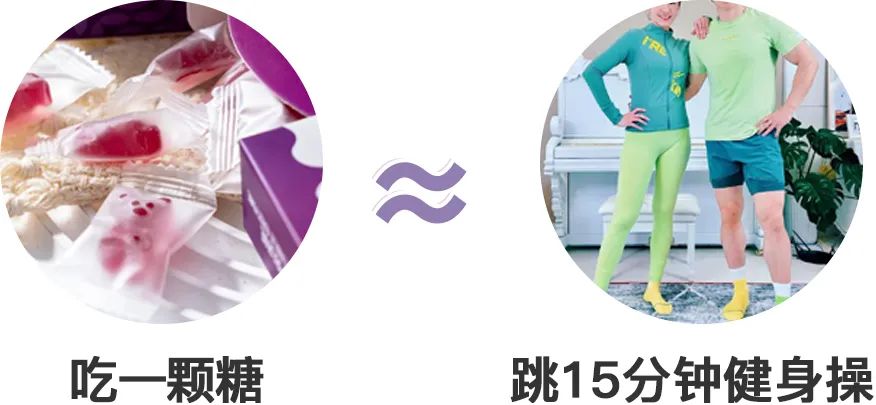 0蔗糖,低卡,高纤,吃一颗≈15分钟的健身操。