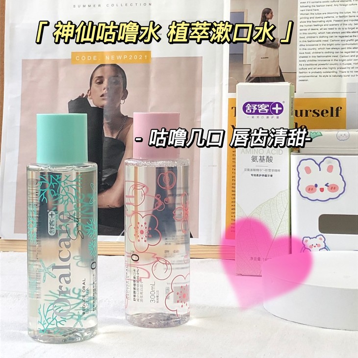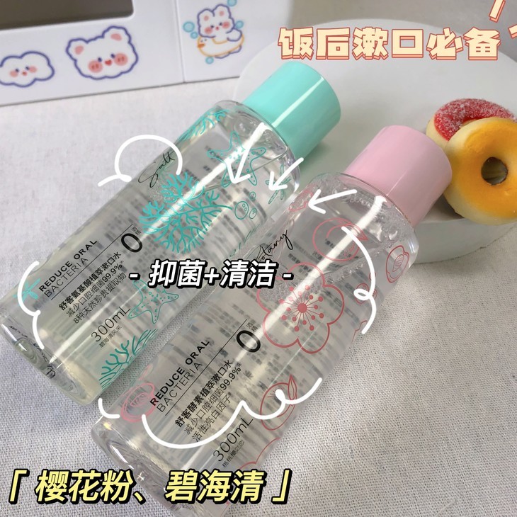 植萃漱口水,甜甜的不会辣口,平时饭后漱漱口,用完嘴巴hi清爽,颜值也很高,樱花粉、碧海清,口腔舒服,心里也舒胡~