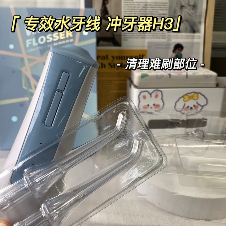 水牙线也就是冲牙器,强力水柱,精细清洁每个日常难刷部位,口腔各处干干净净!