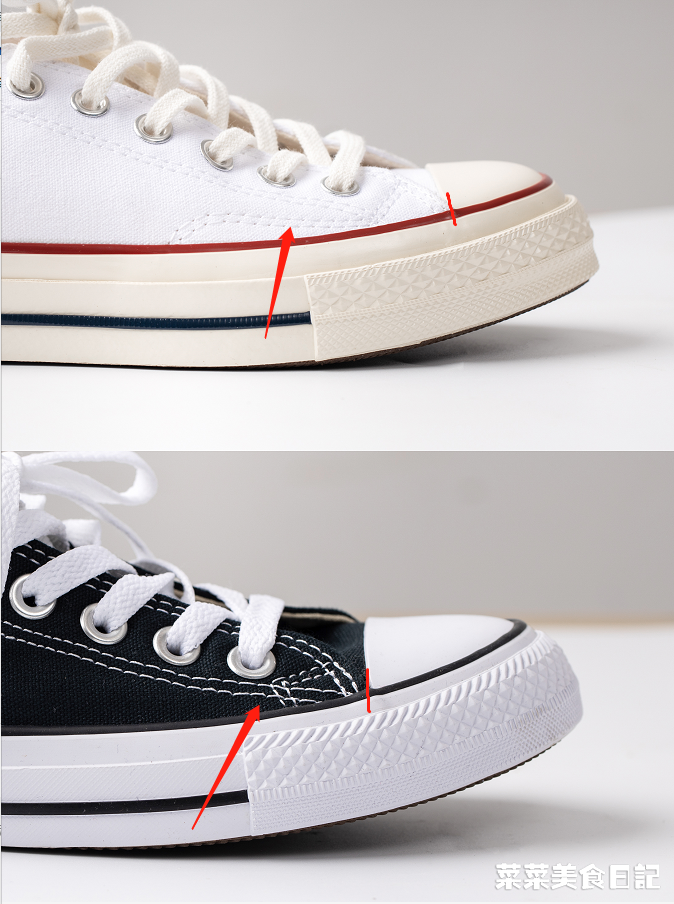 以往是匡威作为篮球鞋存在时为了避免穿错鞋而设计的,1970保留了这点,也成了它的一大特色。