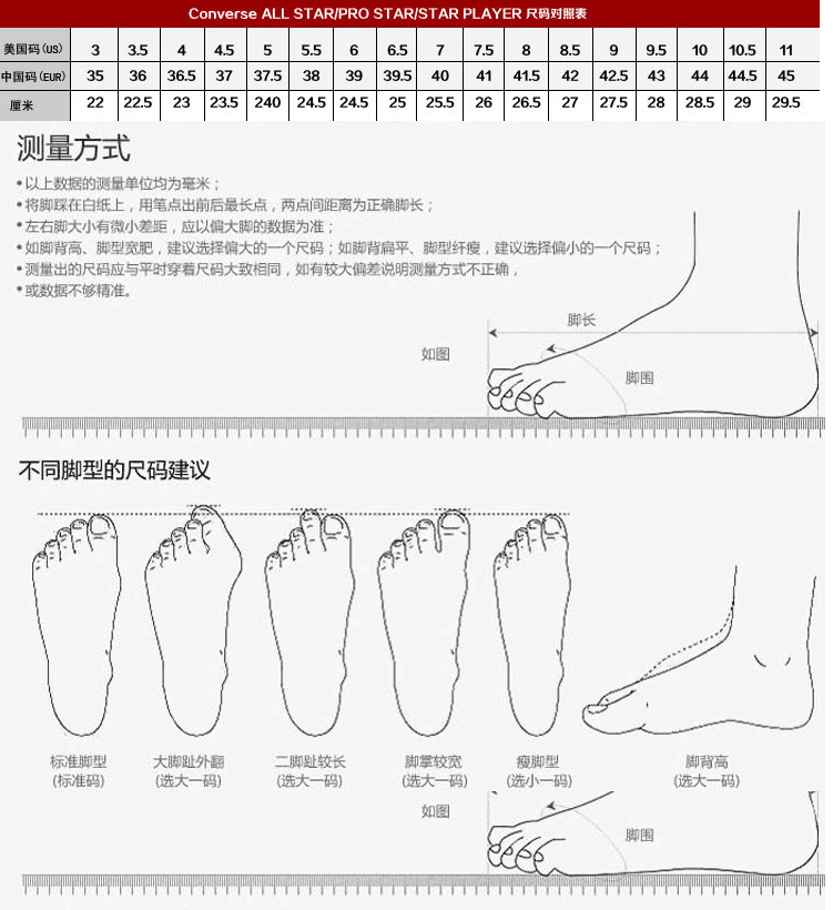 高低帮都有,码数全齐(35~44码),匡威女孩男孩们冲!(匡威鞋码偏大,建议对准尺码表下单)