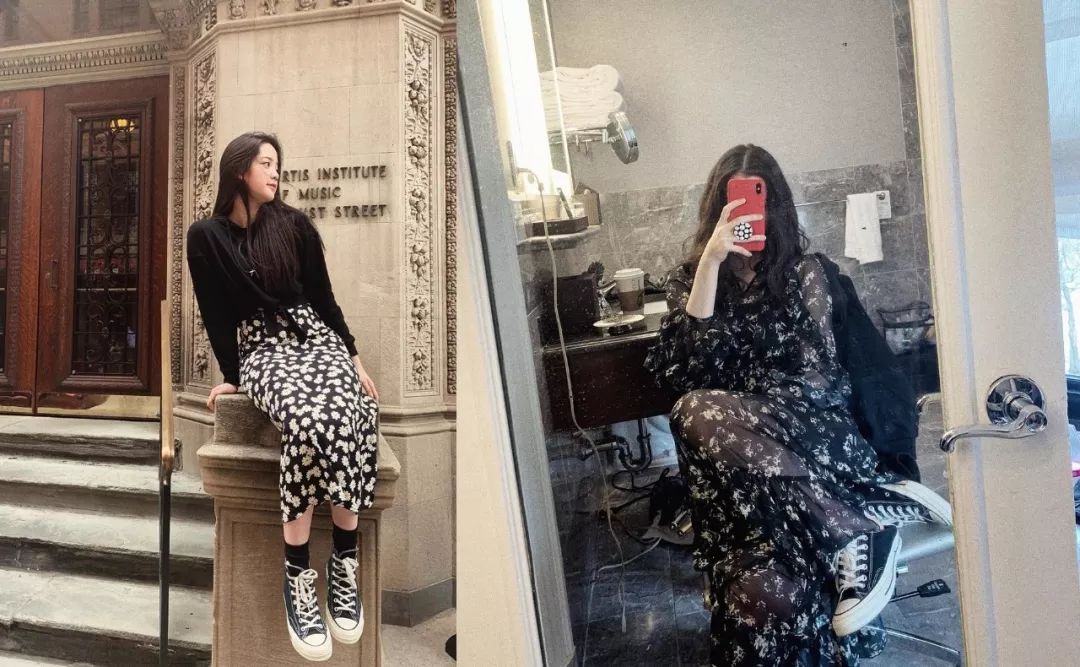 连这种法式碎花裙都能搭得出彩,完全不会违和。