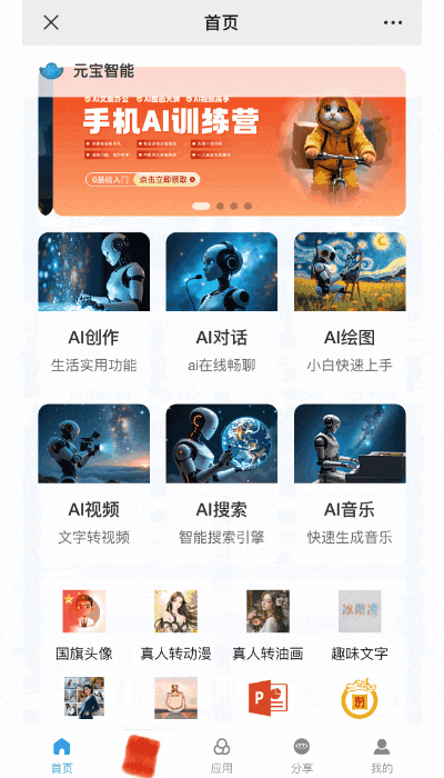 而元宝课程直接帮你配置好体验工具,只需打开手机小程序/浏览器,就能开启你的AI之旅~