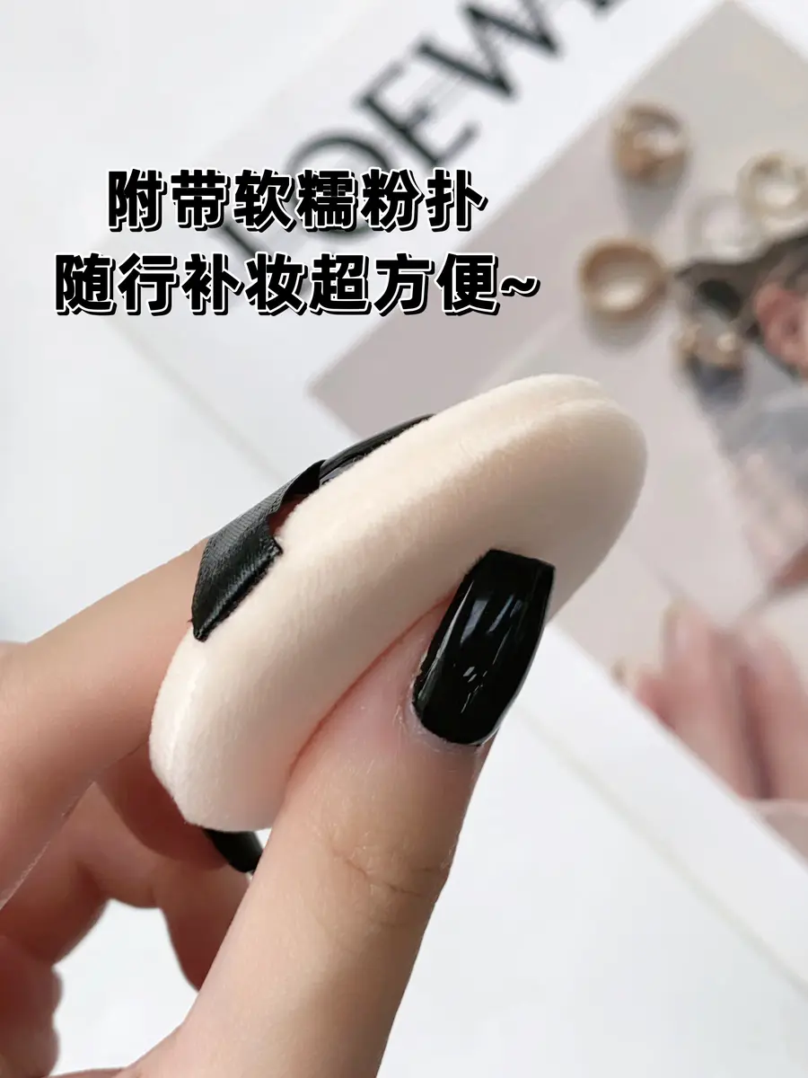 3️⃣将粉扑对折,轻轻点压鼻翼、眼下等细小部位