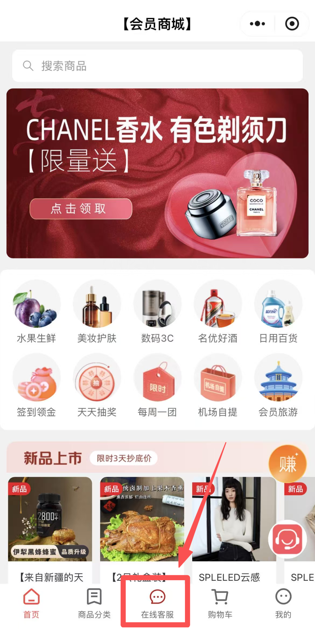 1️⃣ 进入公众号 → 点击底部菜单栏 【会员服务】-【会员商城】