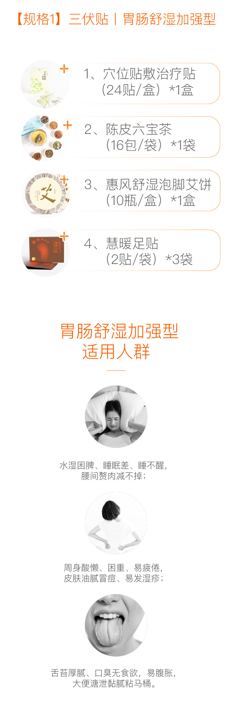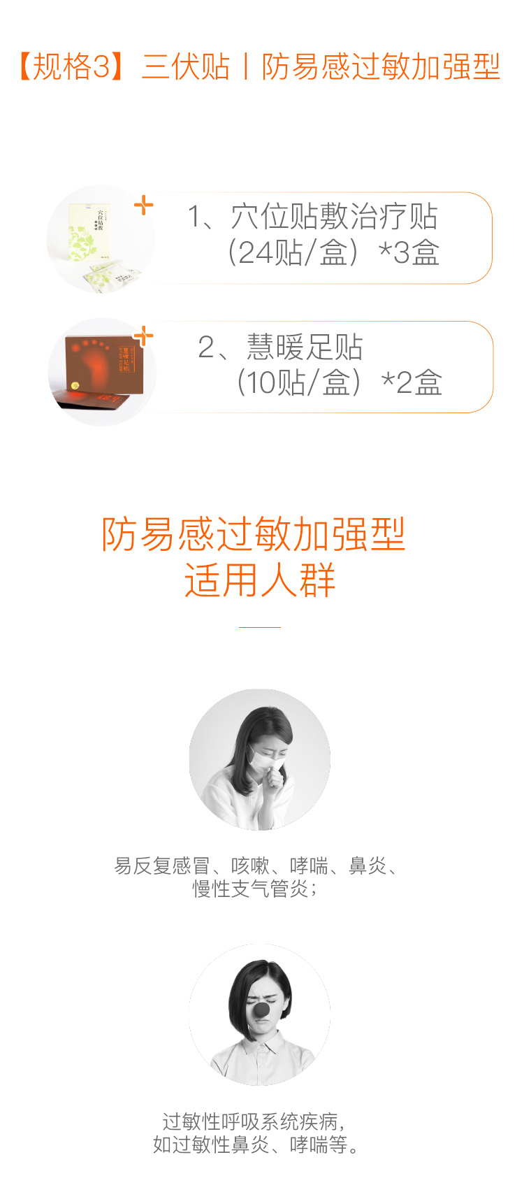 选择易感冒、易过敏套装的朋友,头伏的第一、二、三天,每天都要贴敷三伏贴,选择消化系统的穴位贴敷。