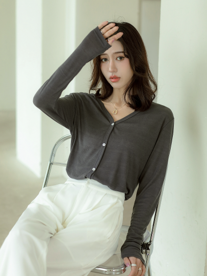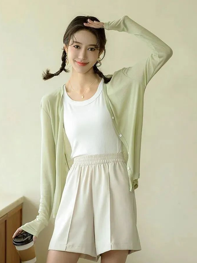 这种纯色开衫妥妥的百搭款,不管是内搭吊带/短袖还是单穿,全都不在话下。不管是休闲风、可爱风还是熟女风都拿捏的死死的;同时搭配下装也是相当万能:牛仔裤、西装裤或长裙、短裙都能稳稳HOLD住~