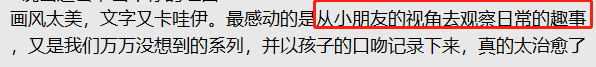 但却并非平淡无奇的流水账哦,反而能让小朋友看得笑哈哈。大概是它太懂孩子了,以儿童的视角观察生活,并以儿童的语言风格来记录。