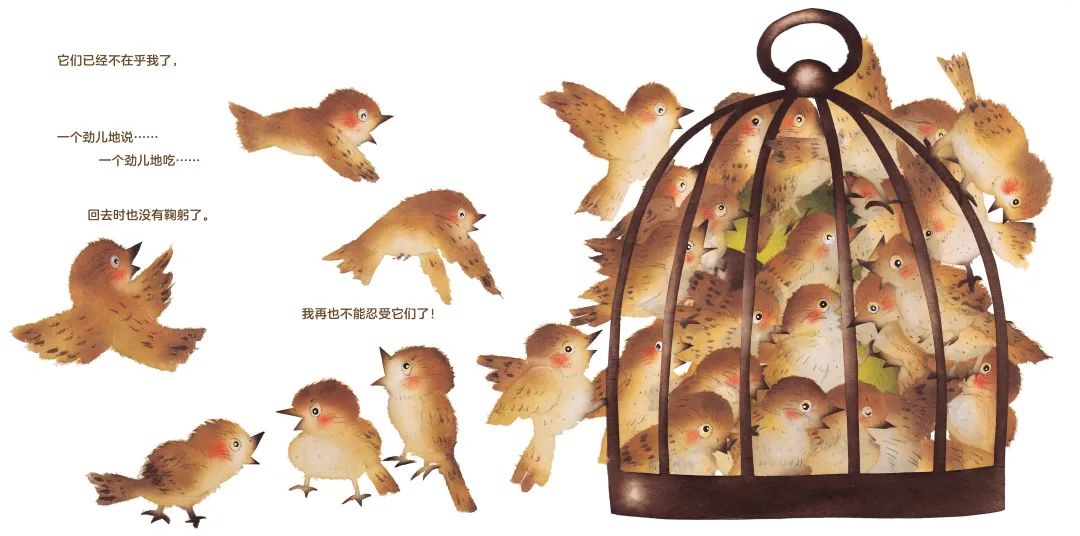 但没想到,来吃白食的麻雀越来越多,越来越多……光顾着吃,也不鞠躬了,不讲故事了!“我”再也不能忍受了!
