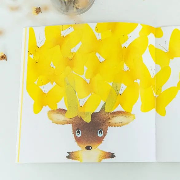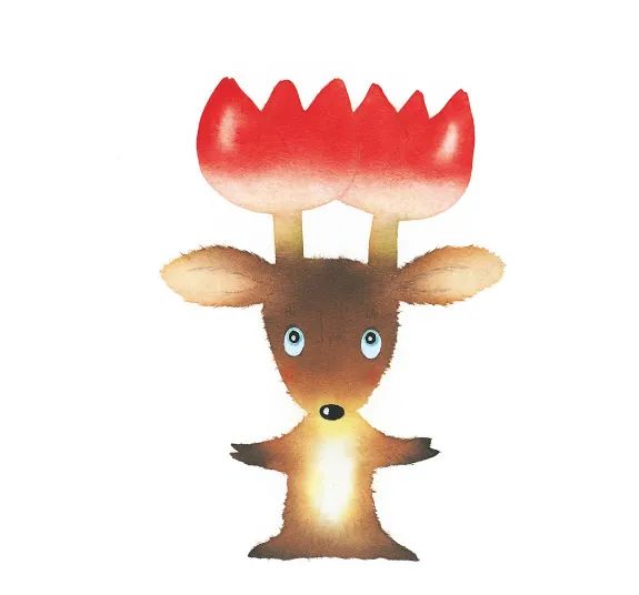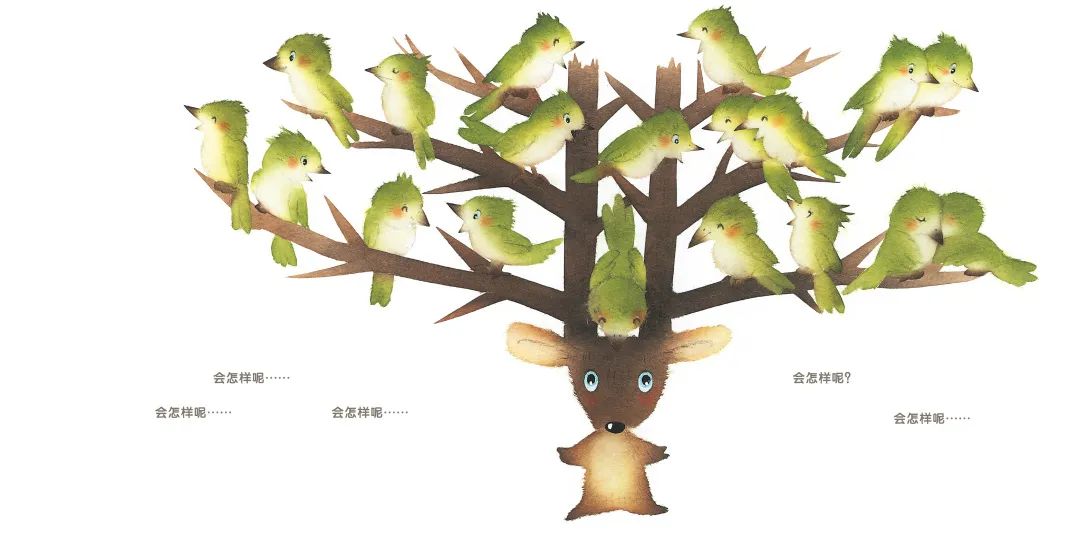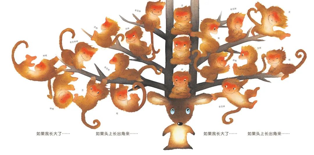 这几页,是讲小鹿幻想自己长大后鹿角的变化。一开始是想象鹿角会开出花: