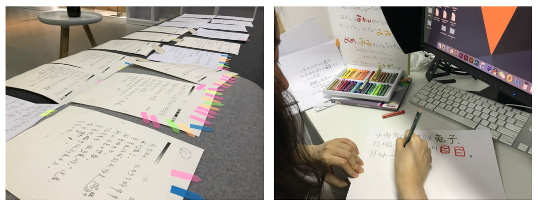 最后才呈现出这样的效果:歪歪扭扭、大小不一的文字,搭配上穿插于其中的可爱小插图,和孩子们的日记非常贴近了,亲切感十足。
