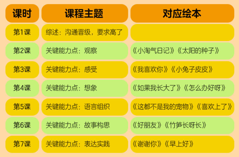 围绕语言表达中的关键能力点——观察、感受、想象、语言组织、故事构思、表达实践,结合12册绘本进行引导,有方法,能落地~