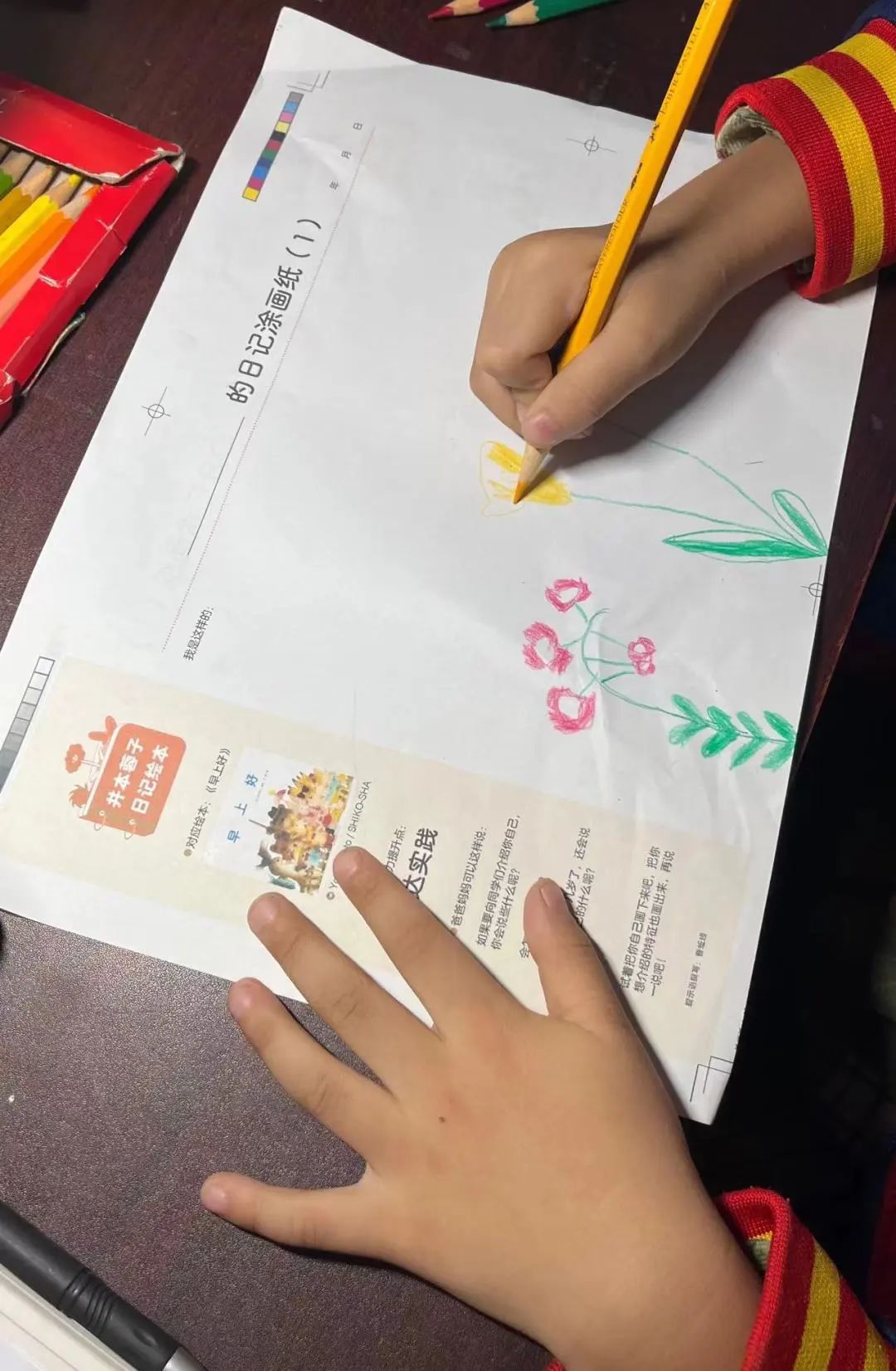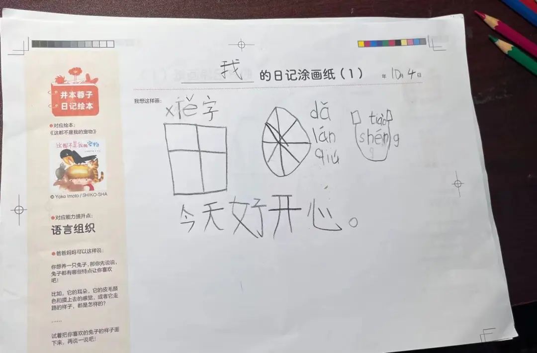 并且搭配了36张涂画纸素材,可下载打印,让孩子在写写画画中输出表达。我们的试读小粉丝——希希已经提前体验啦,输出效果非常不错哟~