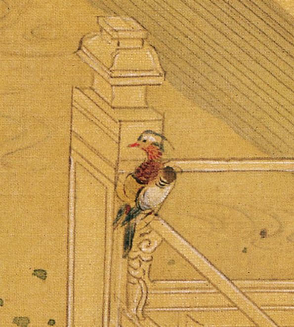 而具体人物形象,饰品,和建筑装饰的风格,又难以摆脱明代的习惯和审美喜好,也因此使得画作的面貌独特。