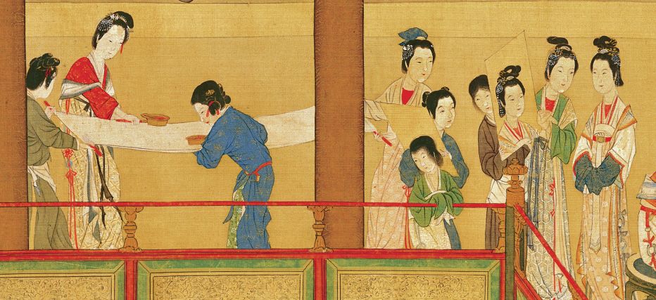 画卷长,设色古雅,仕女众多, 但细节和环境的安排配合才是情景型创作的难题。