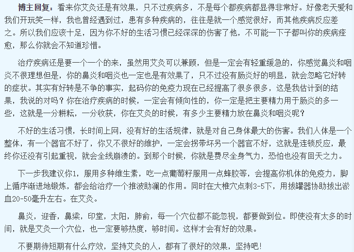 39博客 |艾灸调理肠炎,咽炎,鼻炎