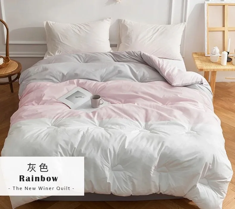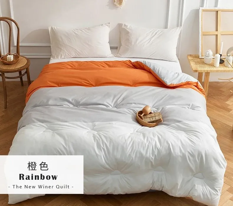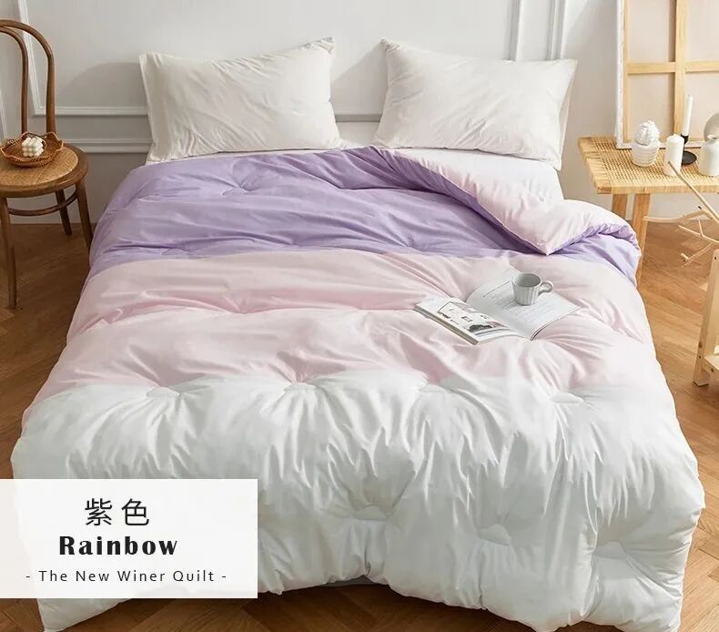 羽绒被的材质很轻,保暖性好,不像家里的棉被盖在身上很重时间久了还容易发黄变形。为了让大家在家就能享受星级酒店的睡眠体验,同时也不用花高昂的价格,今年我们自然醒上新了一款【自然醒彩虹秋冬被】。