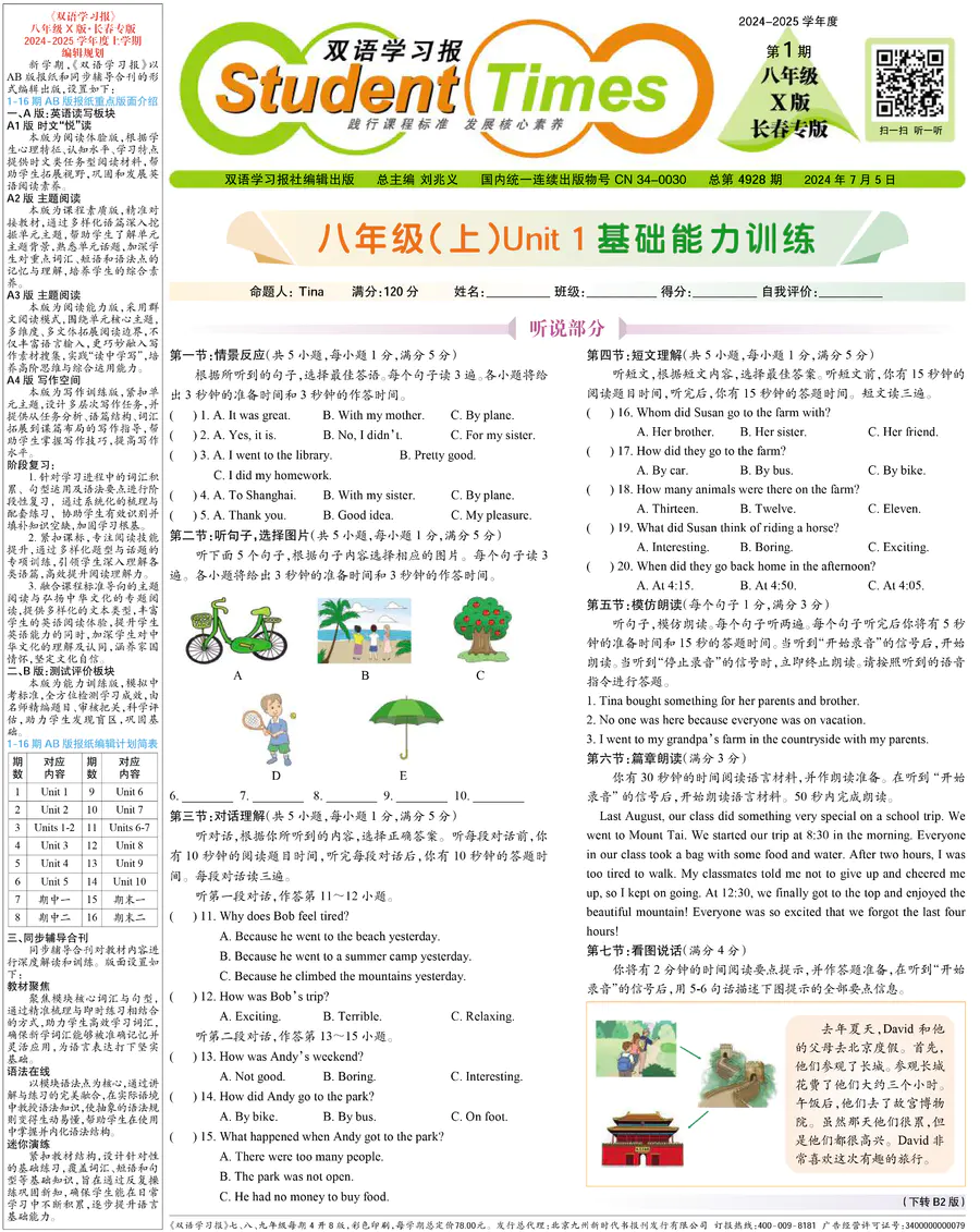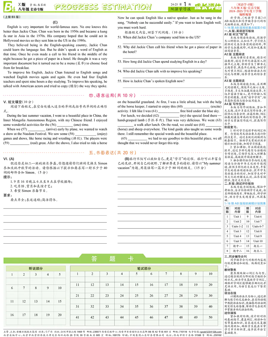 初中英语样报 八年级 X版长春专版 第1期