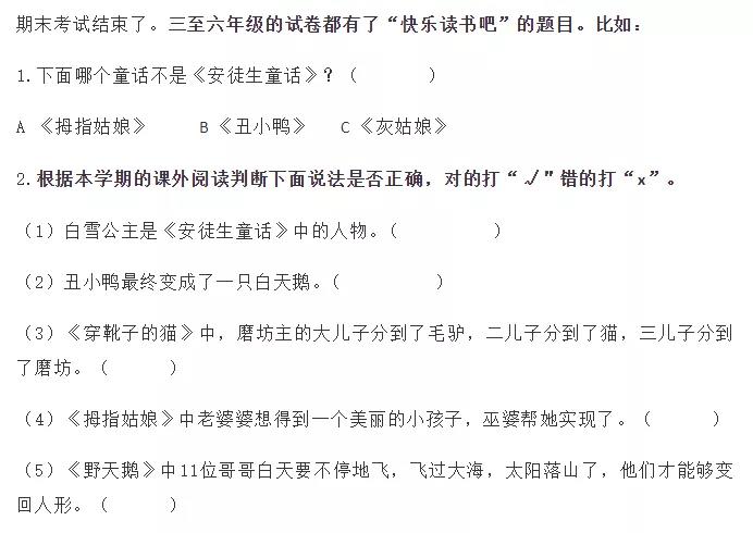 1-6年级每个年级都有,是推荐给孩子的课外阅读书目。这部分也是学科考试的重要内容,例如: