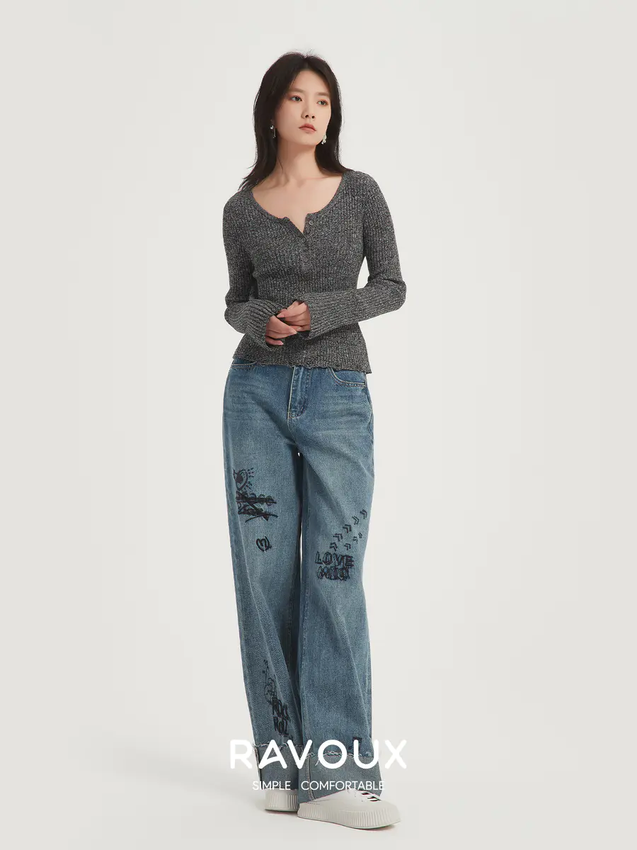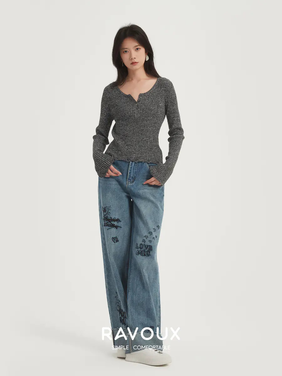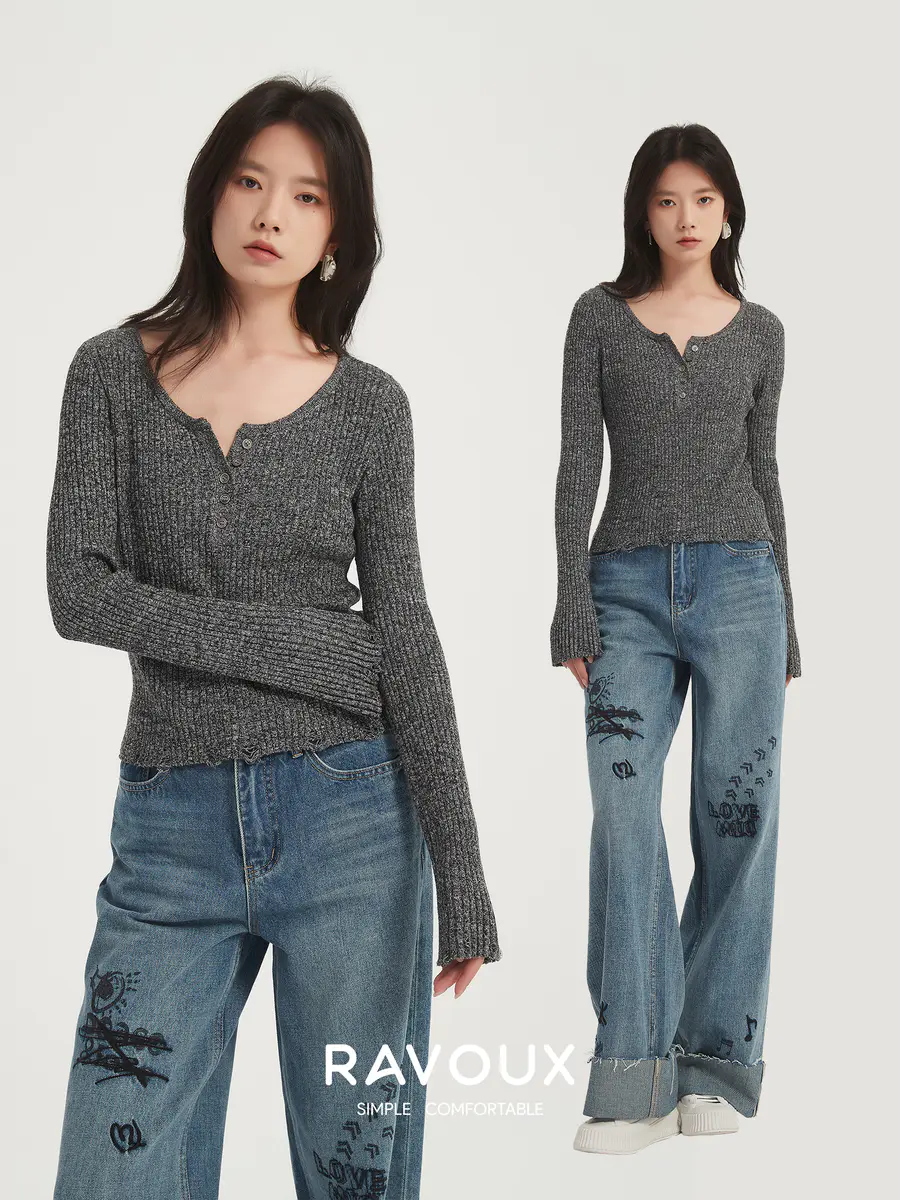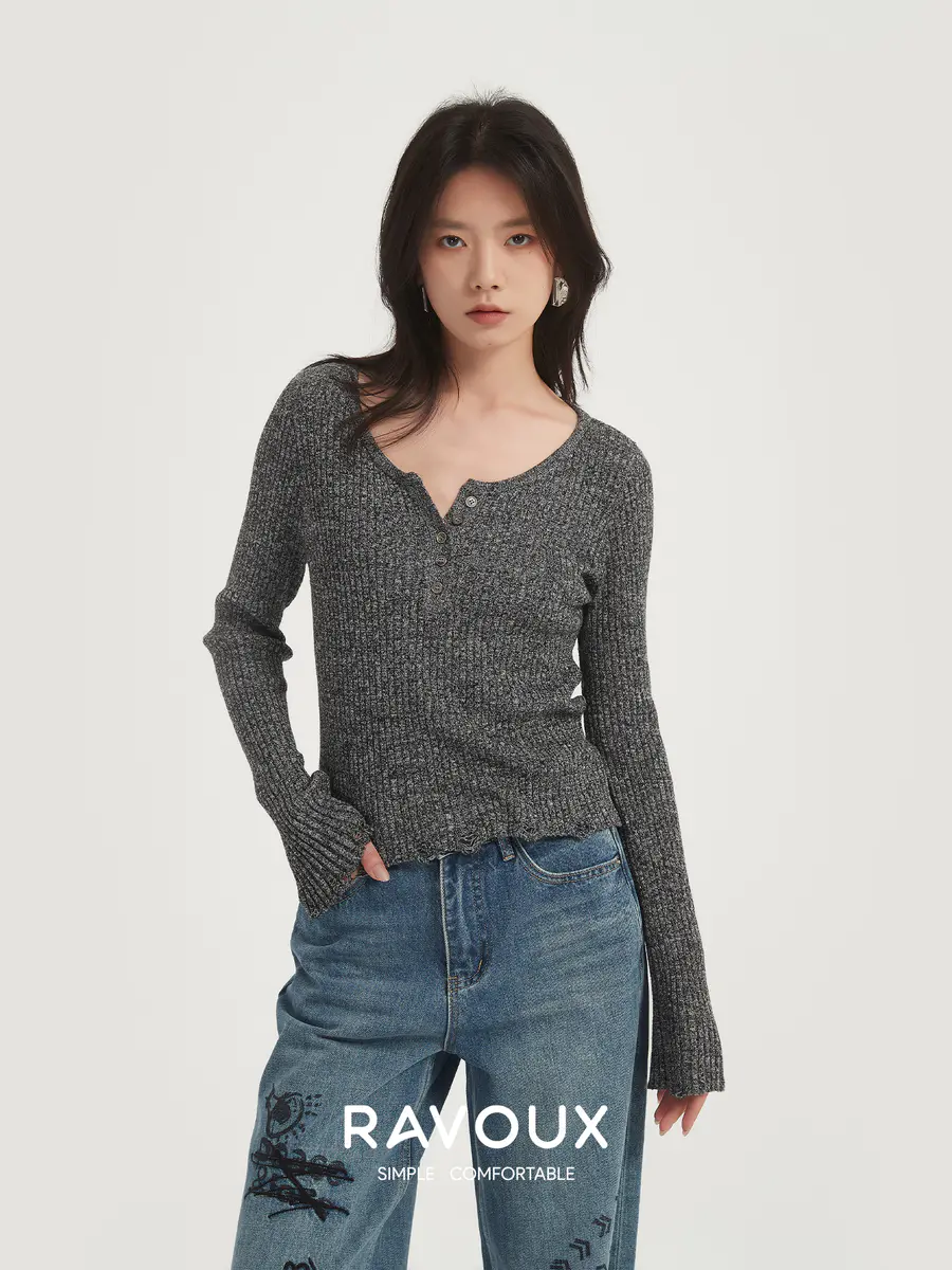 深V领口延伸颈部线条,形成天然「瘦脸滤镜」