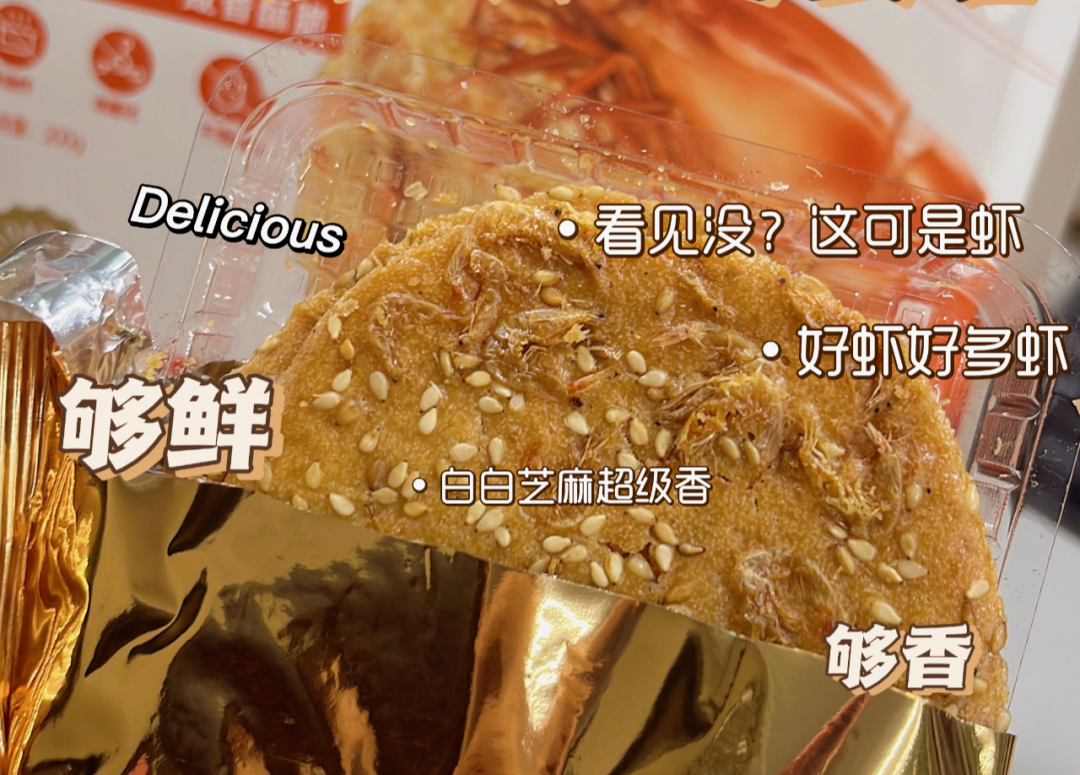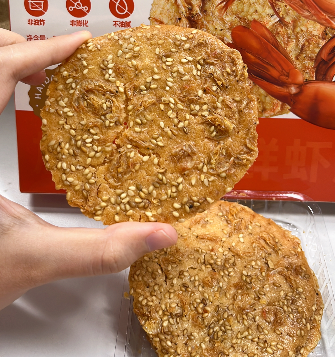 撕开独立包装就能闻到鲜虾味,这么大一片