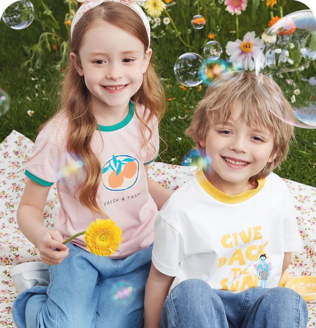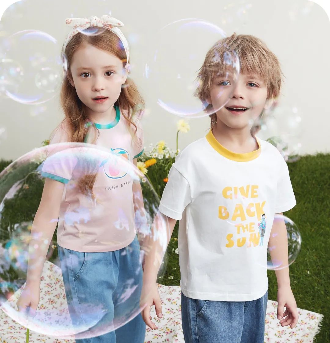 丰富多彩的自然色彩融入到小朋友的衣物上面