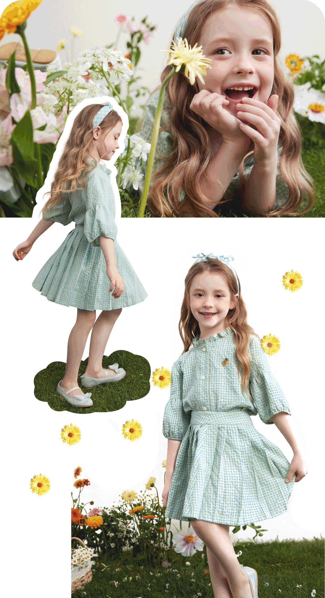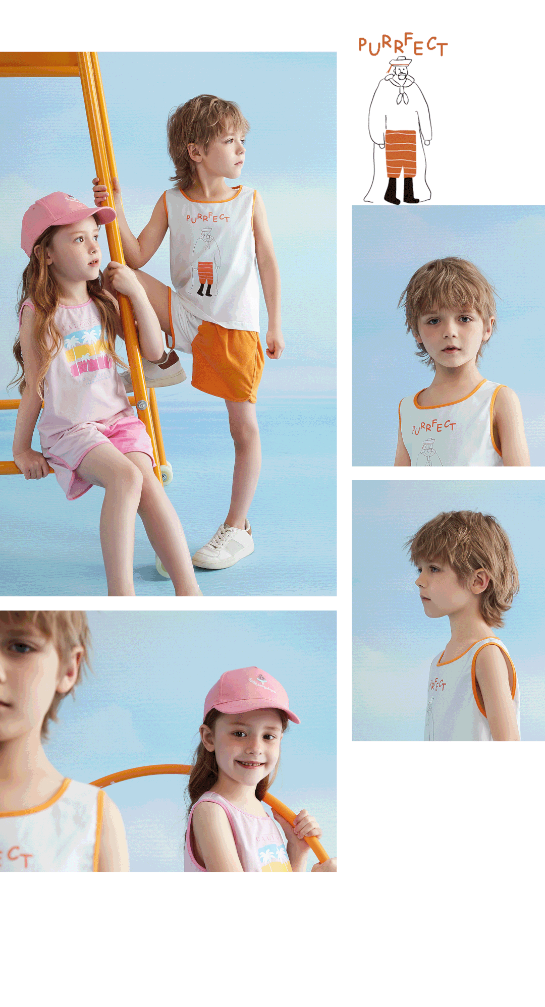 面料大胆突破又坚守本心,继续演绎复古美学,在细腻柔软的棉花及科技面料中进行探索,和小朋友一起享受灿烂夏日。