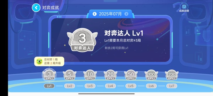 对弈成就可以激发孩子的荣誉感,通过累积对弈局数,获得各种达人勋章吧