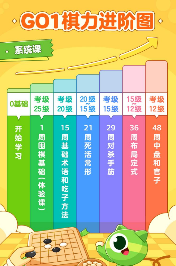 豌豆围棋整个体系从入门到进阶效率很高,一年就能到12级,两年到1级,两年半就能晋升业余1段,无论是是零基础的孩子,还是有基础的孩子,都能找到系统学习围棋的方法
