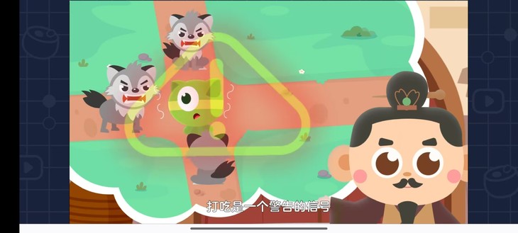 之后会直接展示棋盘,然后站在孩子的角度问问题,借助动画角色的一问一答,更容易理解