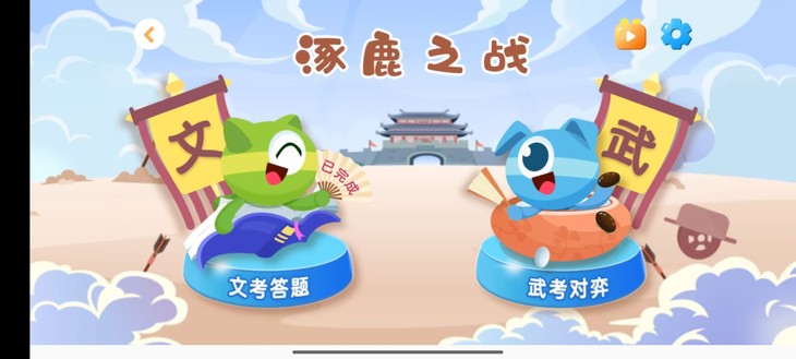豌豆围棋的游戏式闯关练习,也和传统文化息息相关,每个闯关主题对应一个历史文化故事,就像25级的闯关,其实就是炎黄和蚩尤大战背景的涿鹿之战