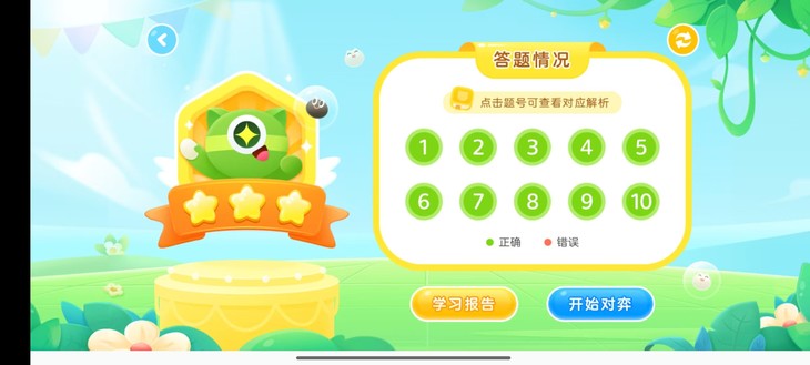 学完一节课,还能收到一个学习报告,时长、正确率和平均水平对比,孩子的学习情况一目了然
