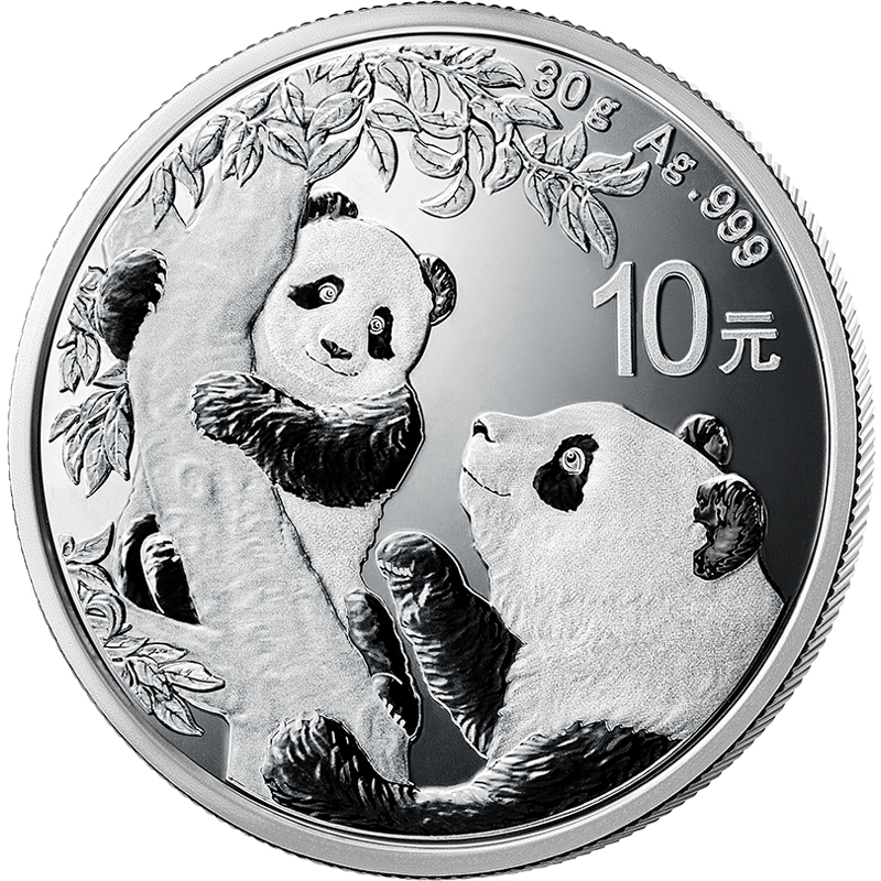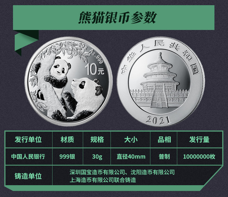 2021年的30克熊猫银币上,是一只被母亲守护和鼓励着学习爬树新技能的熊猫幼崽,代表着独立和成长!